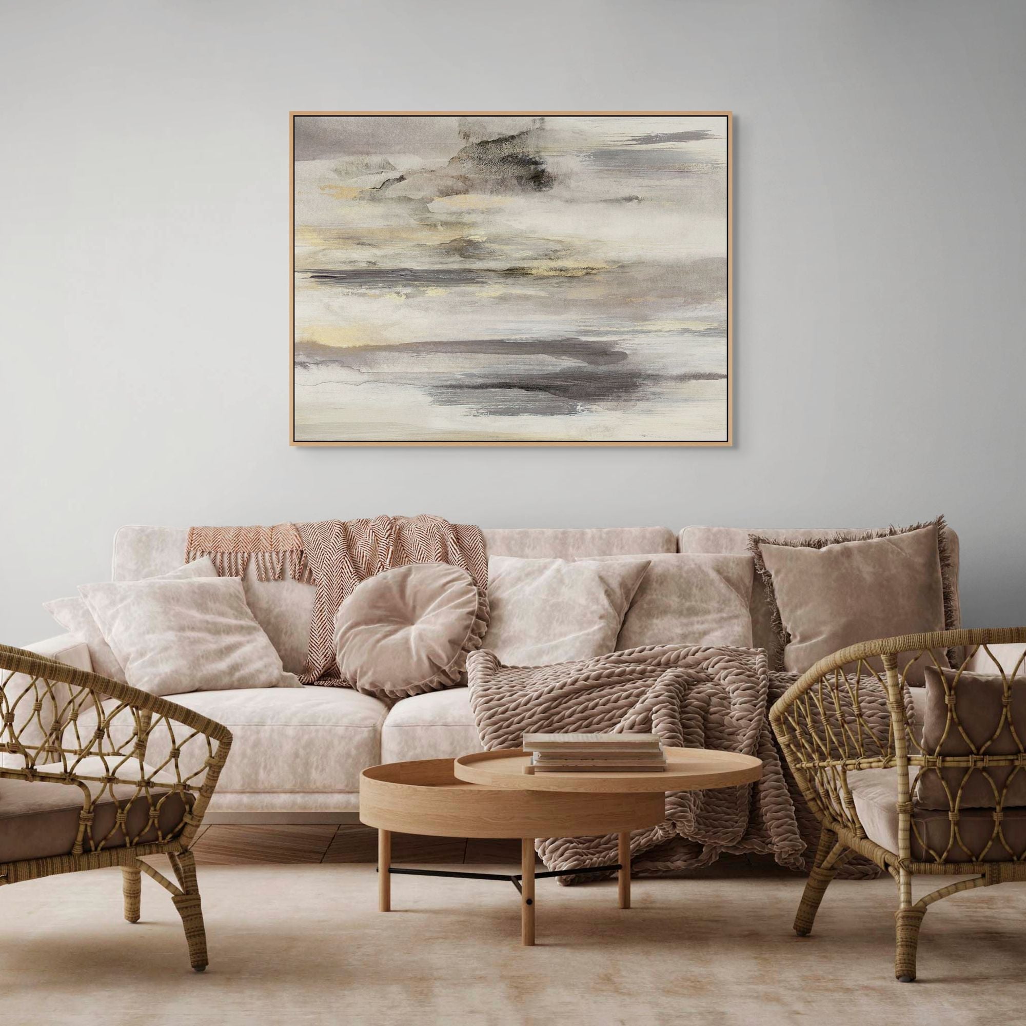 ["canvas","Champagne Float Frame","Framed Canvas","Image Conscious","Landscape Orientation","Neutral","Neutrals","Walnut Float Frame"]
